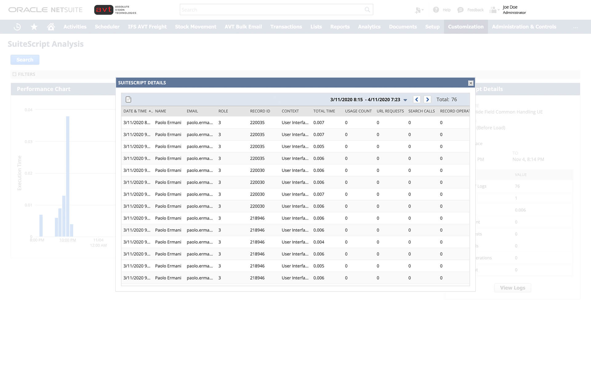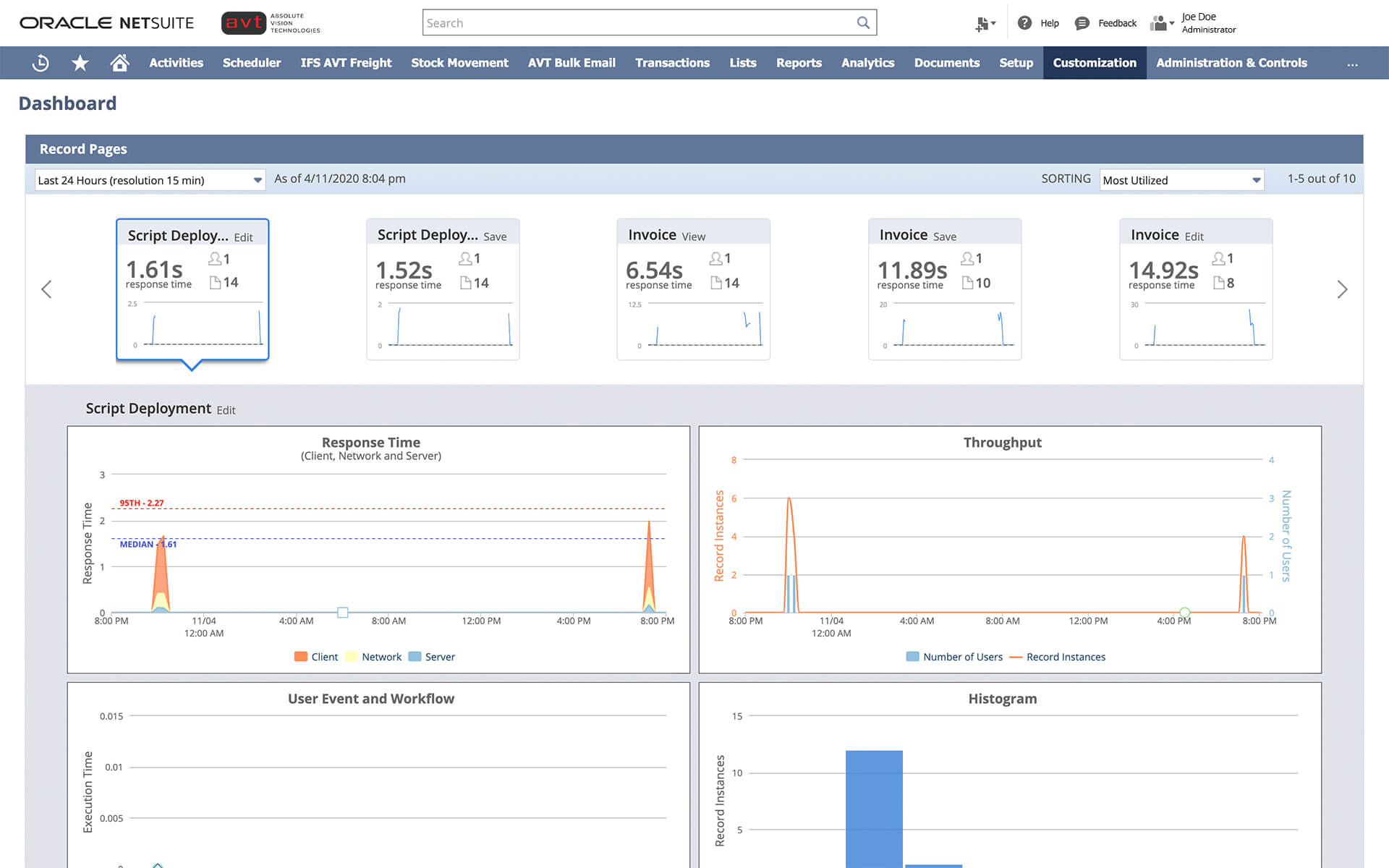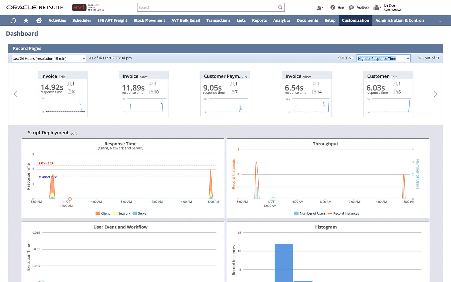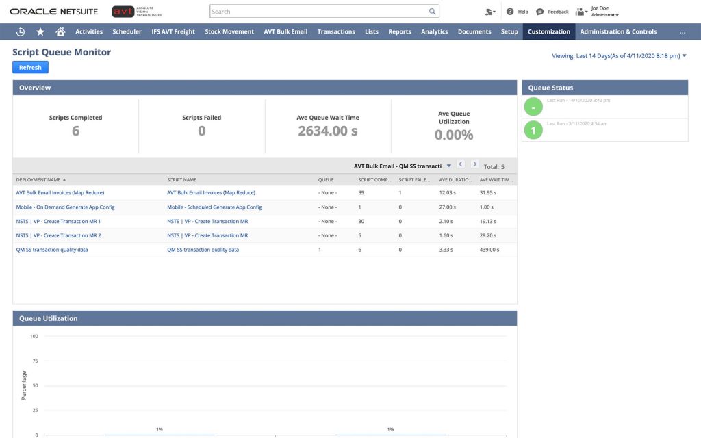 - Monitor performance of user event scripts, workflows, RESTlets, scheduled scripts, and Suitelets.
