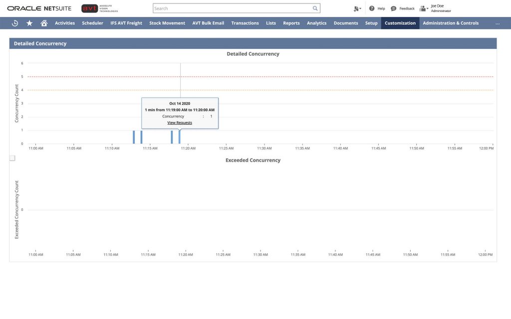 10. Concurrency Monitor: Concurrency Monitor tool is used to analyze the performance of web services and RESTlet integrations. The tool includes dashboards that lets you view critical data about your concurrent requests and limits.