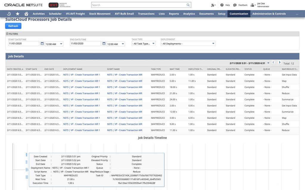 6.1 Script Utilisation SuiteCloud Processors Monitor tool to view and analyze the performance of your map/reduce and scheduled script jobs handled by SuiteCloud Processors.