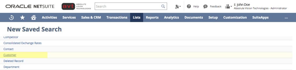 - 6. Choose record type as customer and the saved search you created as the saved search filter: