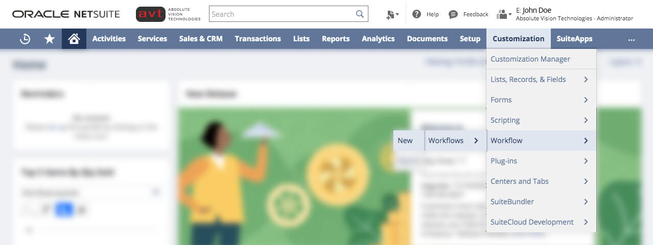 - 1. Navigate to Customization -> Scripting -> Workflows -> New